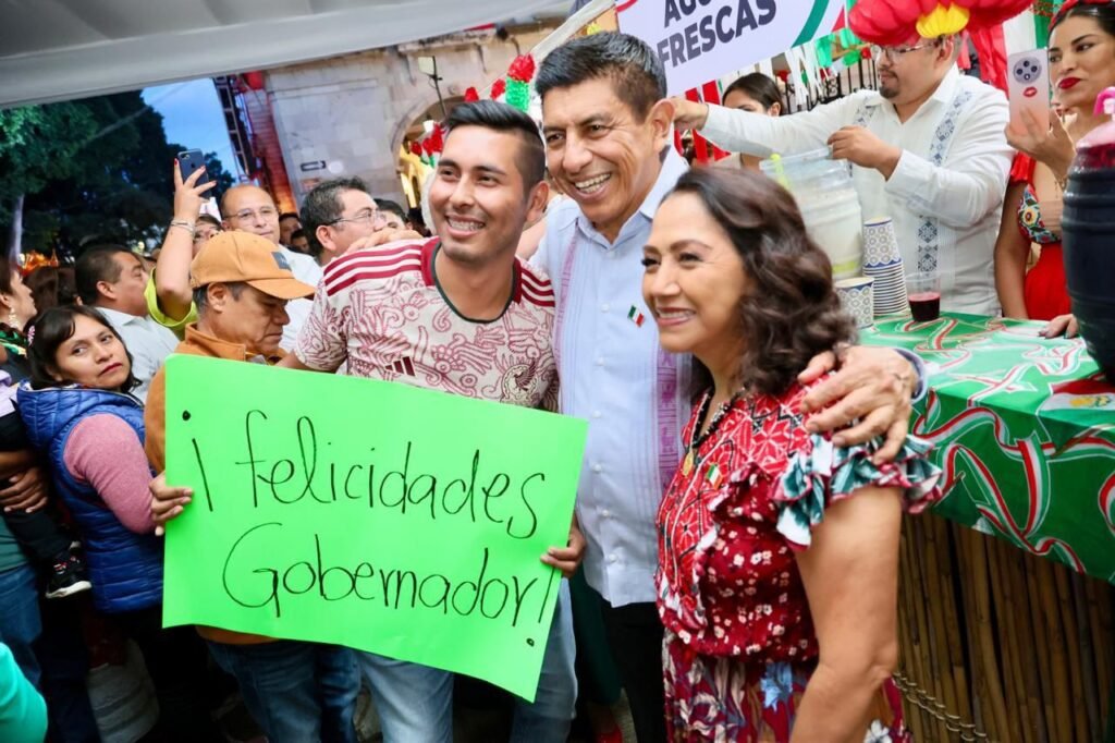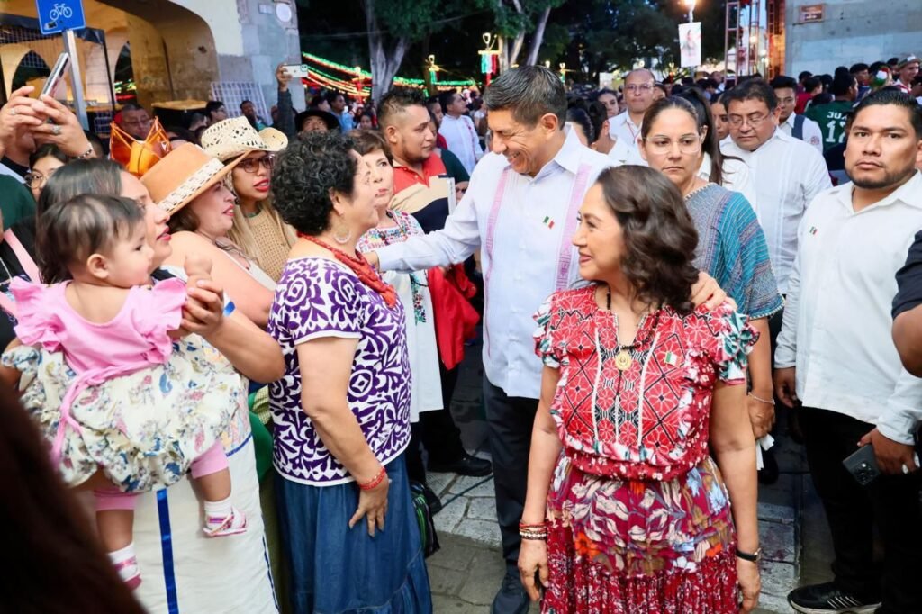 En una auténtica celebración de sabor, música y fervor patrio, el gobernador Salomón Jara Cruz y la presidenta honoraria del Sistema DIF Oaxaca, Irma Bolaños Quijano, convivieron con decenas de personas durante la Verbena Popular 2025, realizada por tercer año consecutivo en el zócalo de la ciudad de Oaxaca.