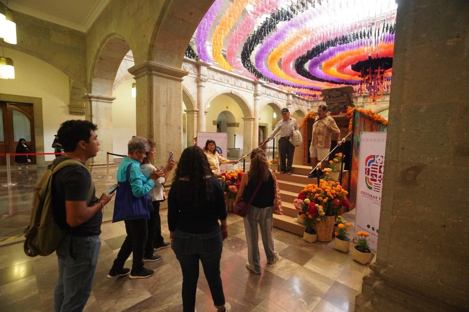 Oaxaca de Juárez, Oax.- El Palacio de Gobierno se convirtió en un espacio lleno de color, tradición y cultura durante la instalación del Altar Monumental, visitado por cerca de 15 mil oaxaqueñas, oaxaqueños y turistas nacionales e internacionales.