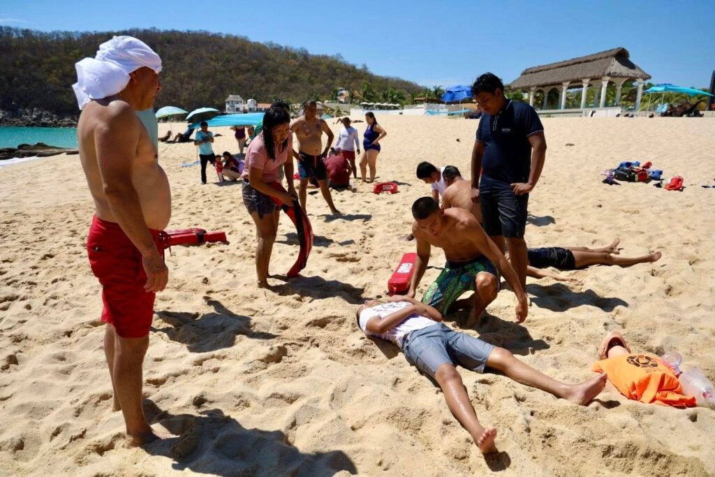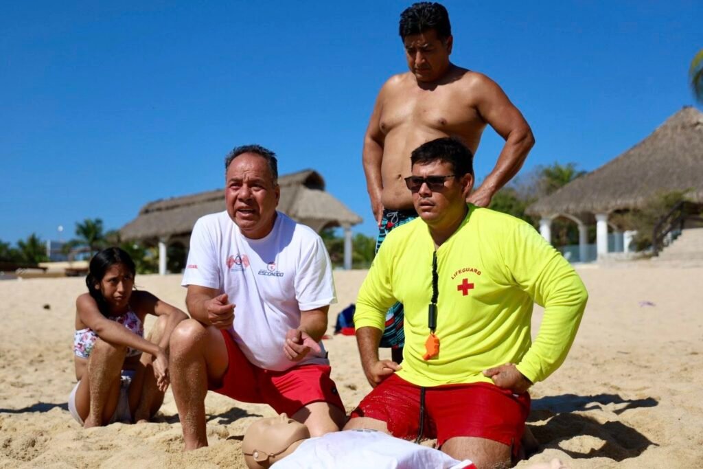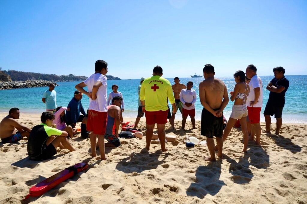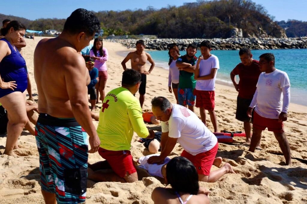 La capacitación fue organizada a través de la Dirección de Protección Civil y Bomberos de Huatulco, en coordinación con Rescate Acuático Huatulco e INABAC, como parte de las acciones preventivas que se impulsan en el municipio.