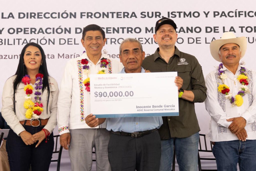 El gobernador de Oaxaca, Salomón Jara Cruz, encabezó la entrega de 26 millones de pesos para el fortalecimiento y operación de la primera etapa de rehabilitación del Centro Mexicano de la Tortuga, ubicado en Mazunte, en el municipio de Santa María Tonameca.